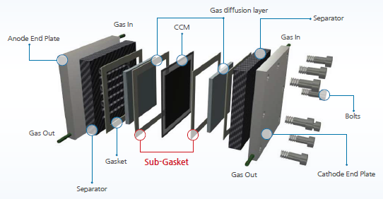 SG系列是氫燃料電池中質子膜(PEM)的結構支撐的粘合劑膜