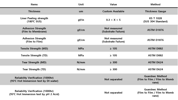 邊框膜之間附著力高(熱固化型) 耐熱性、耐化學性能高 在各種環境依舊能保持長期耐久性 可定制各種厚度的PEN膜